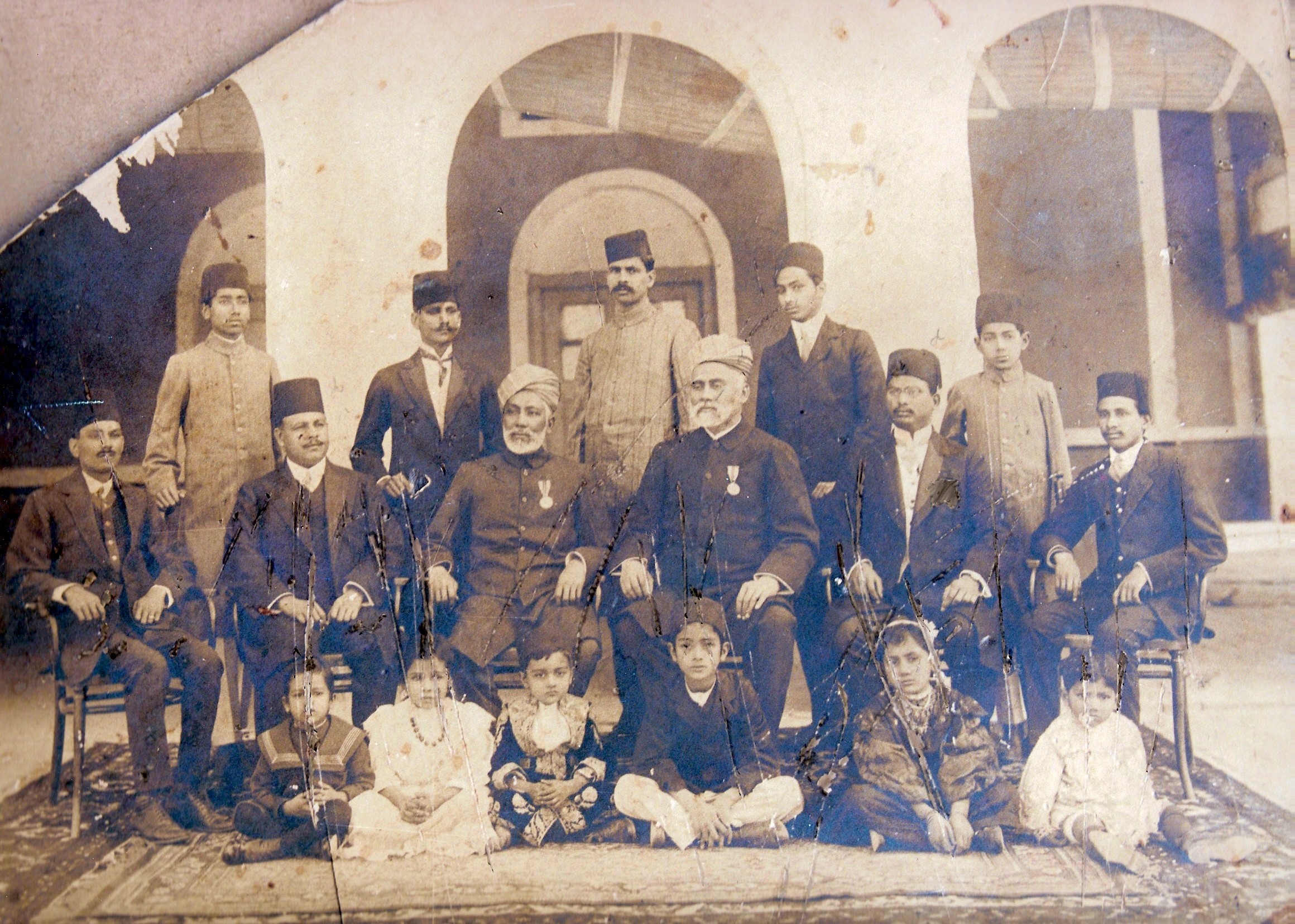 Mohammad Ibrahim, his brother Mohammad Dawood and their children. Standing on the left is Mohammad Aslam and on the right is Mohammad Azam, sons of Mohammad Ibrahim.